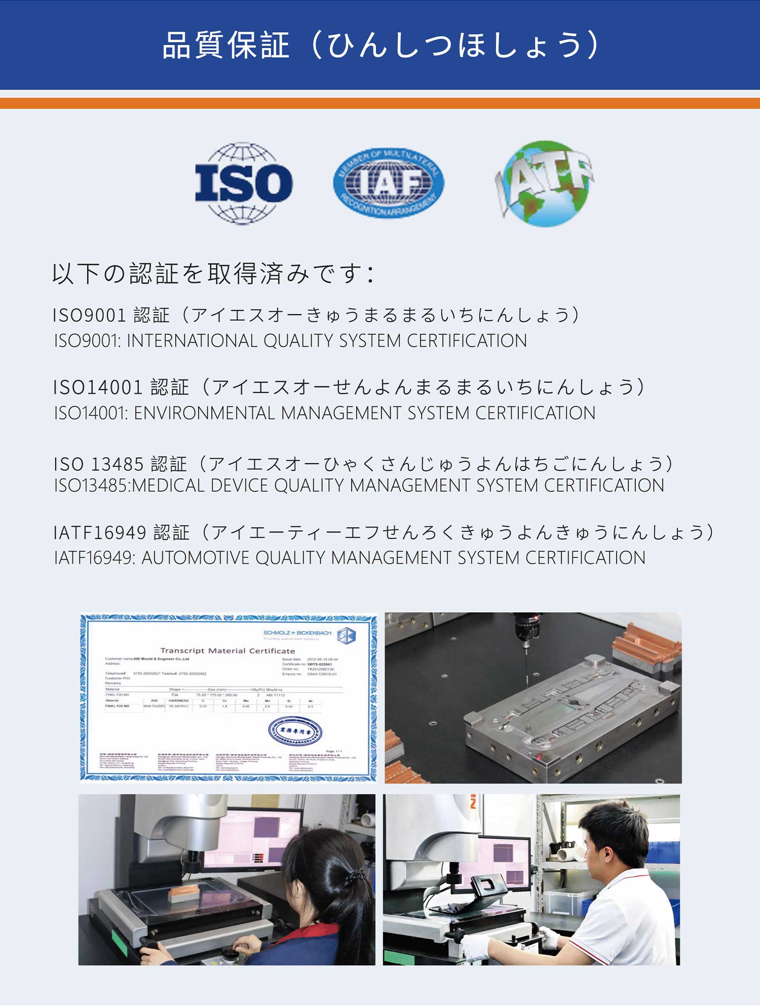 10 多年にわたり精密プラスチック金型の設計・製造及び射出成形製品の生産に専念しています